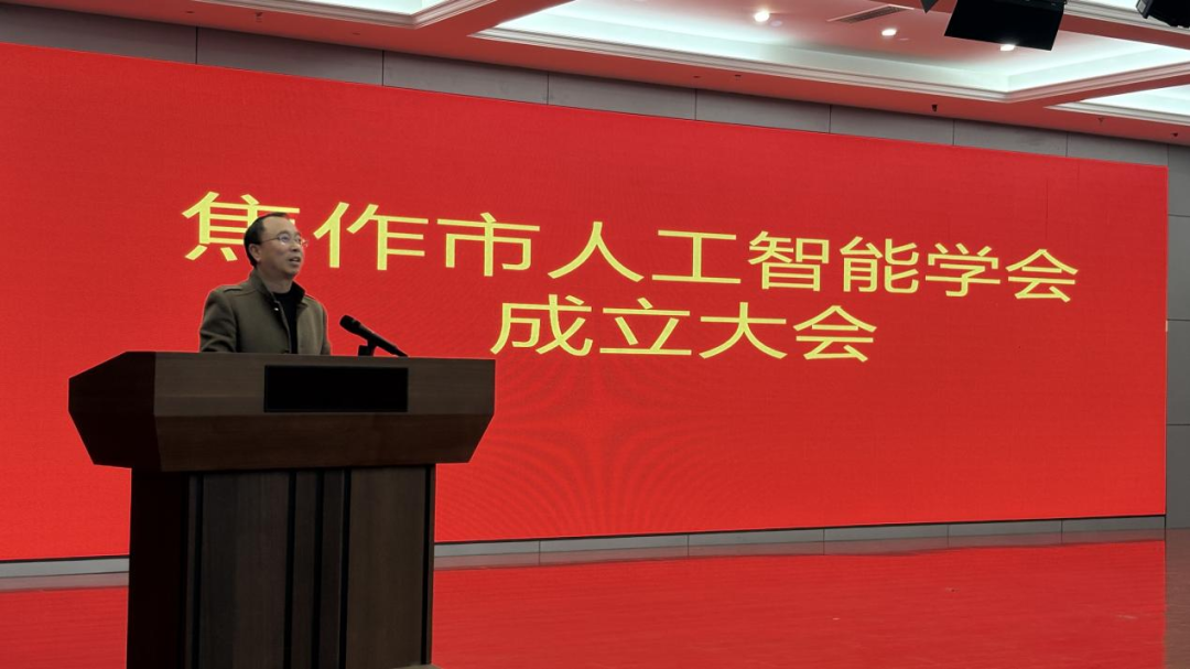马广建代表河南省人工智能学会致辞。他向焦作市人工智能学会的成立表示热烈祝贺,并指出人工智能是驱动新一轮科技革命和产业变革的核心力量,焦作市人工智能学会的成立恰逢其时,责任重大。他对学会发展提出期待:一是期待学会充分发挥纽带作用,紧密链接河南理工大学等本地高校、科研机构与重点企业,围绕智能制造、智慧矿山等焦作优势产业方向,促进产学研用协同创新与关键技术攻关;二是期待学会能够主动融入区域发展战略,探索人工智能赋能本地文旅融合、生态保护与城市治理的新路径,为焦作市经济社会高质量发展注入新动能。